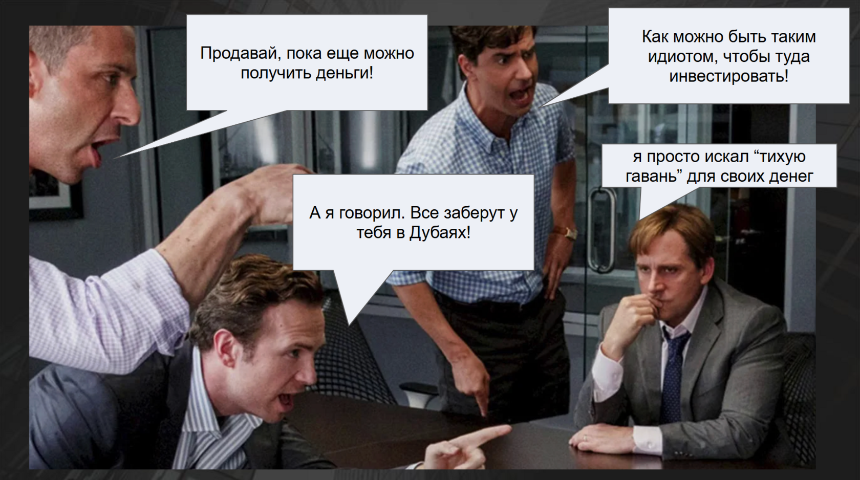 При этом рынок уже демонстрировал активный рост, а студии на стартах продаж в последние периоды предлагались от 1 млн дирхам даже в не самых престижных районах. В подобных условиях многие покупали, исходя из ожидания продолжения тренда. Сейчас усилился поток советов о срочной продаже зарубежных активов, однако значительная часть инвесторов изначально не преследовала спекулятивных целей, а искала защиту капитала.