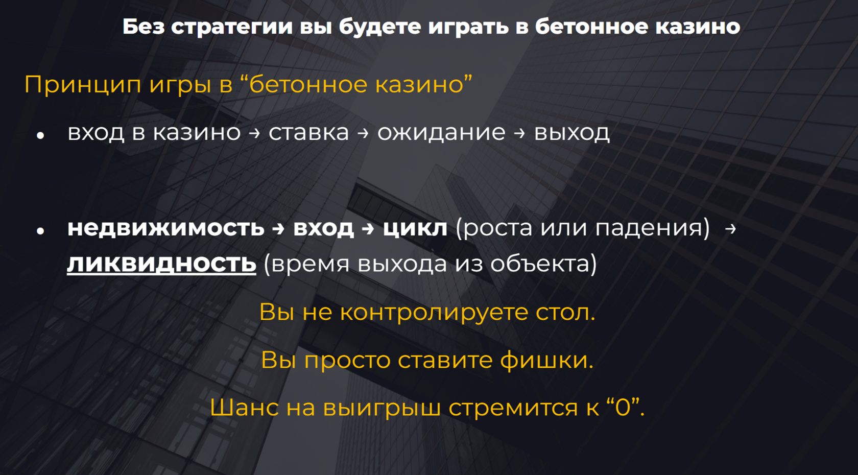 В результате многие считают, что анализируют рынок и тщательно выбирают объекты, тогда как по факту участие происходит в том самом «бетонном казино».