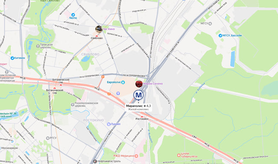 В качестве варианта для личного проживания или первой покупки можно рассмотреть студию или однокомнатную квартиру в ЖК «Мираполис». Это проект с хорошей транспортной доступностью (близость к ВДНХ, Ростокино), неплохой локацией и визуально качественной архитектурой. Стоимость студии здесь начинается от 10 млн ₽ (без отделки).