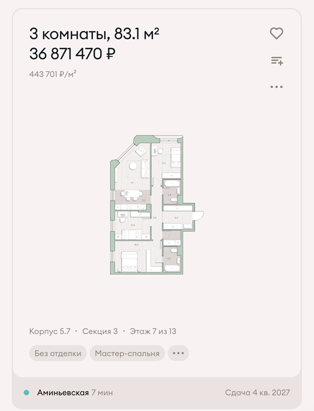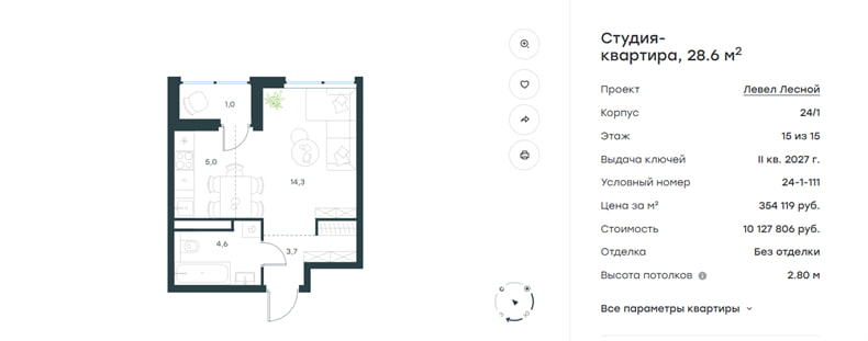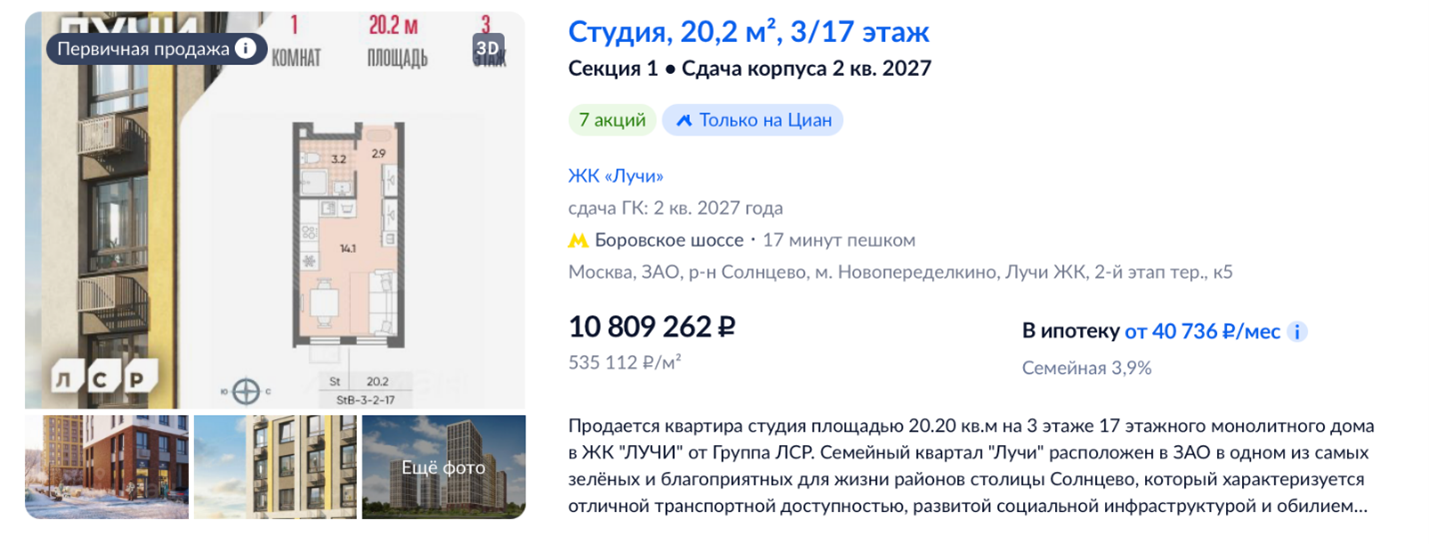 В качестве альтернативы для инвестиций с первоначальным взносом около 4 млн ₽ можно рассмотреть более ликвидные проекты, например, в «Саларьево Парк». Использование ипотечного «плеча» позволит приобрести объект с лучшими перспективами для последующей сдачи в аренду.