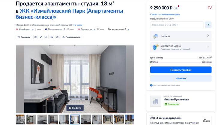 Для этой цели лучше рассматривать готовые квартиры с отделкой, которые можно сразу сдавать, частично покрывая ипотечный платеж. Хорошим решением могут стать апартаменты в ЖК «Измайловский парк» (от 9 млн ₽). Локация у метро обеспечивает стабильный спрос на аренду.