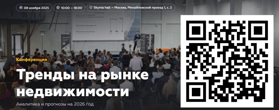 Подробнее об особенностях рынка недвижимости можно узнать на конференции Smarent, которая пройдет уже 8 ноября. Популярные эксперты и спикеры ответят на самые интересные и важные вопросы, расскажут о рынке и его будущем.