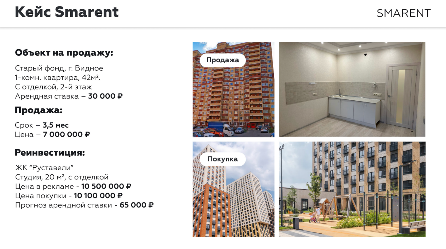 В практике Smarent таких примеров много. Например, человек владел квартирой в Видном стоимостью 7 млн руб. и сдавал ее за 30 тыс. руб. в месяц. Эта цена не изменялась годами. Он продал квартиру и купил новое жилье с отделкой за 10,5 млн руб. Сейчас аналогичные квартиры стоят уже 12–15 млн руб.