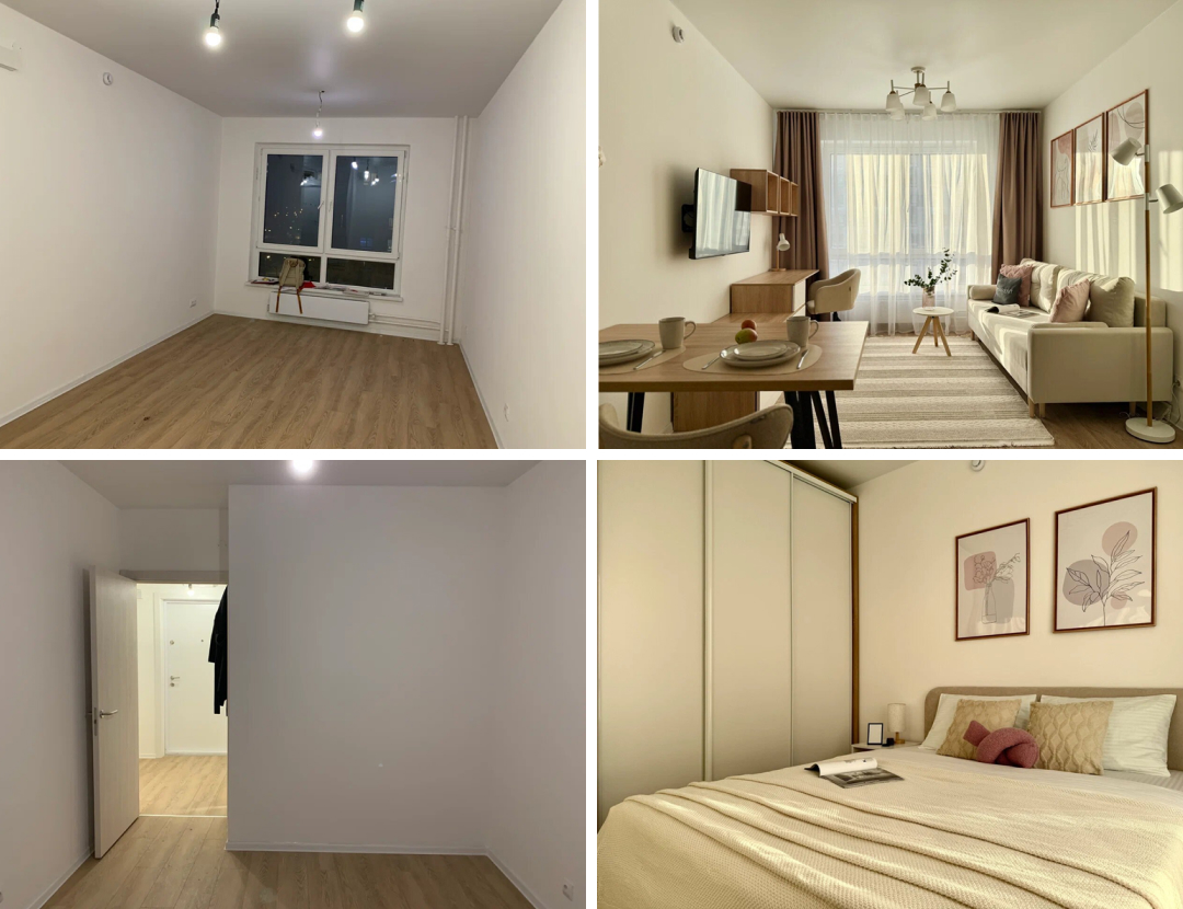 К нам обратилась собственница евро-2 от ПИК в Отрадном с запросом на меблировку. Девушка уже передала две другие квартиры в управление Смарент, была довольно результатом и полностью доверяла нашему опыту. Сделать квартиру в стандартной бело-серой палитре довольно просто и недорого: на маркетплейсах полно производителей такой мебели, её легко комбинировать, не нужно думать о сочетаемости цветов и стиля. Именно поэтому так стали делать все. Но именно поэтому собственник такой арендной квартиры автоматически попадает в зону конкуренции с десятками таких же объектов, с той же мебелью, декором и с тем же ощущением съёмного жилья. И в этой зоне выигрывает не тот, кто лучше, а тот, кто дешевле. Мы в Smarent видим это каждый день.