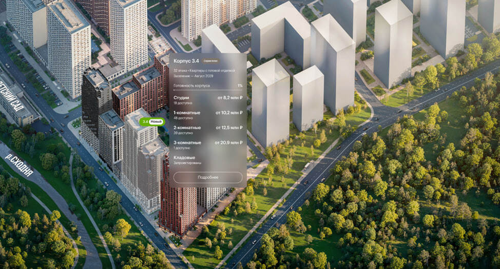 Начнем с проекта «Строгино». Это крупный квартал на северо-западе Москвы, который, несмотря на близость к МКАД, считается перспективной локацией. Территория бывшей промзоны будет полностью застроена — построят не только жилье формата ПИК Плюс и «Среда», но и социальную инфраструктуру. Строительство масштабное, но старт запланирован только на 2026 год, а срок сдачи — на 2030 год.