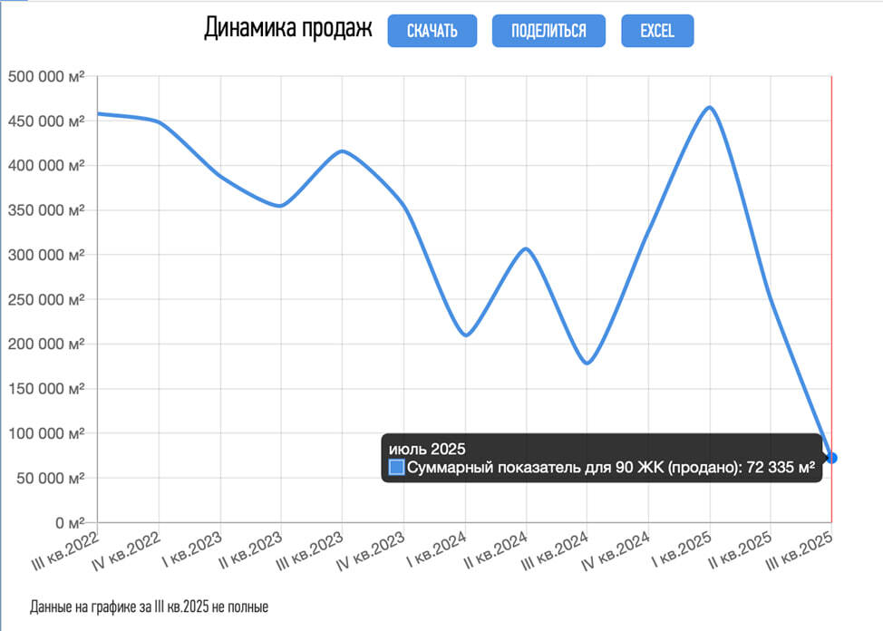 Большинство людей уже мысленно «похоронили» крупных застройщиков. Речь идет не только о «Самолете», но и о компании ПИК. Первое, что делают потенциальные покупатели, — смотрят на открытую статистику продаж. Не нужно быть гением, чтобы увидеть тревожную динамику.