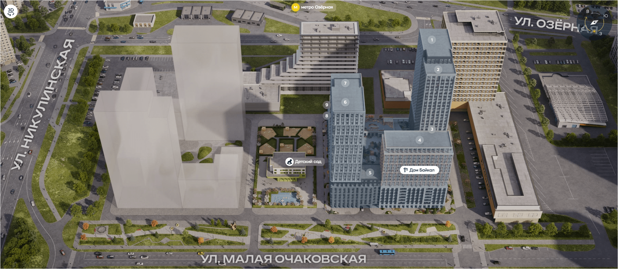 Клиентам понравился район метро Озерной. Вернее, показался перспективным: сейчас это не самое приятное место, но уже заметно, как оно «хорошеет» и превращается из серой и унылой промки в новый и современный микрорайон. К тому же прямой доступ до Сити, аэропорта Внуково, МГУ и ряда других топовых вузов точно создают достаточный спрос на проект.