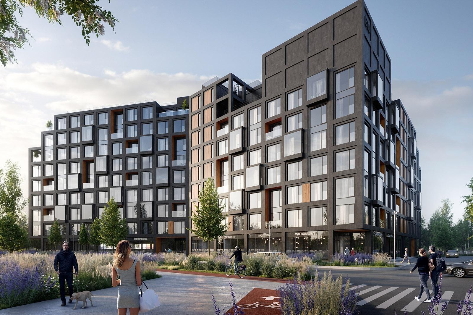 ЖК, который активно обсуждают – проект СберСити от СБЕР. Он находится за МКАДом на своем островке и выделяется среди прочих проектов.