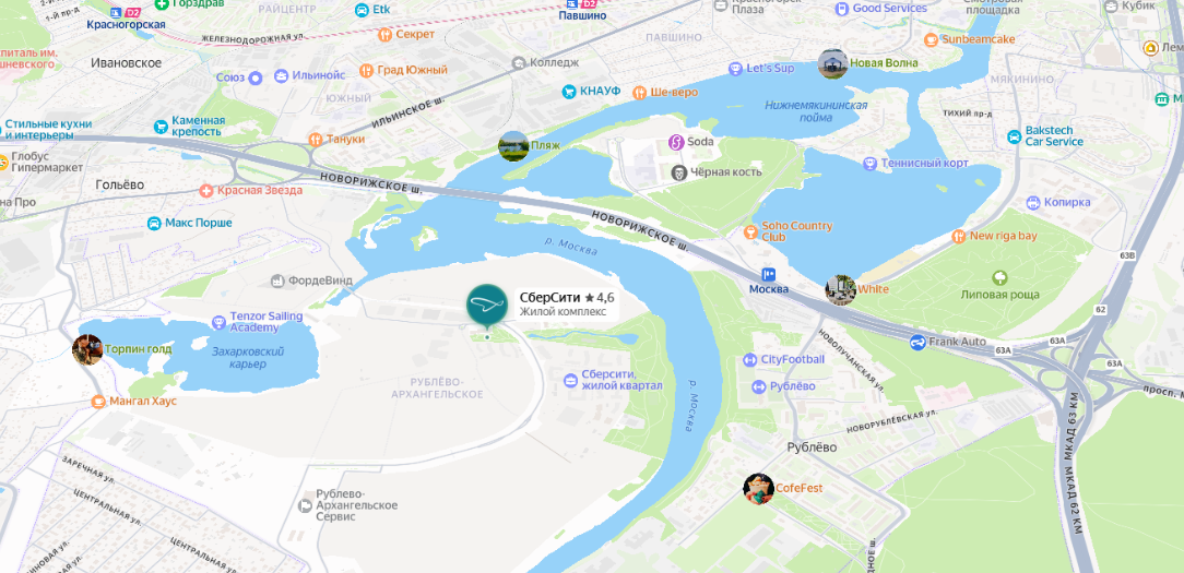 Есть замечательный проект Сбера — Сберсити, который находится практически на своём собственном острове. Расположение уникальное, так как это район за МКАДом, где есть пространство для современных жилых комплексов и комфортной городской среды.