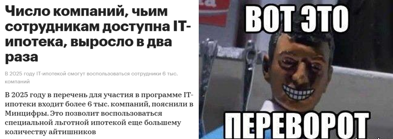Следующий ключевой инструмент на рынке — это IT-ипотека. Ее история — наглядный пример того, какие изменения могут ждать и семейную программу. Ровно год назад, в августе, условия внезапно ужесточили: максимальную сумму снизили с 18 до 9 миллионов рублей, а главное — полностью исключили из программы Москву и Санкт-Петербург. Это прецедент, который показывает: вполне вероятно, что то же самое могут сделать и с семейной ипотекой.