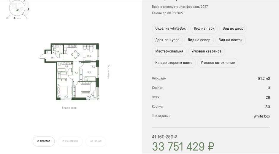 В случае с вторичным рынком ситуация намного сложнее — аналогичная квартира на рынке будет стоить уже около 40 млн, то есть 500-550 тысяч за метр. Причина — продавец всегда хочет продать подороже. В случае с хорошей квартирой  на вторичке без подводных камней — покупатель найдется всегда, так как подобных квартир мало.