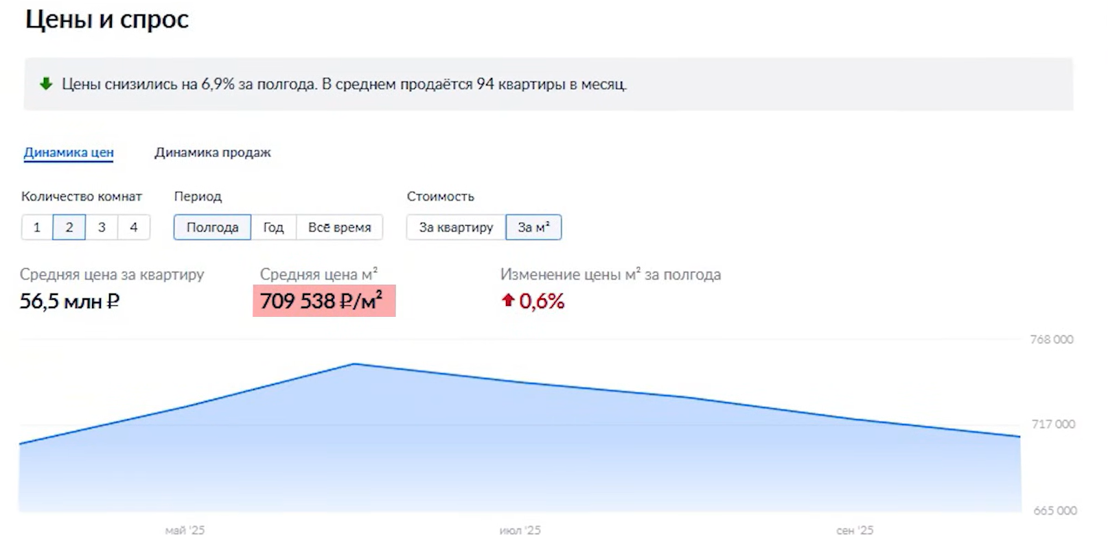 На сегодняшний день средняя цена, по которой застройщик продает квартиры в новых очередях, составляет порядка 700–750 тыс. руб. за кв. м. При этом, если обратиться к статистике и посмотреть реальные сделки, становится видно, что между ценами на сайте и фактическими ценами есть ощутимая разница. Застройщик предоставляет скидки, отсрочки и рассрочки. У Донстроя в целом выстроена достаточно сильная внутренняя система лояльности: компания активно продает квартиры своим же клиентам. То есть сценарий выглядит так — человек жил, например, в одном проекте Донстроя, накопил средства и переехал в «Остров». Аналогично могут действовать жители «Сердца столицы», у которых есть капитал и желание сменить локацию.