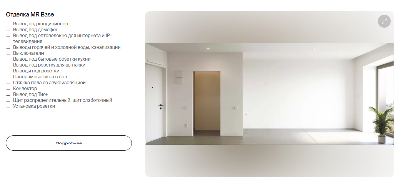 И, кстати, это вариант с отделкой MR Base – так у застройщика называется whitebox. Выглядит достойно и может экономить собственнику немало денег на этапе отделки.