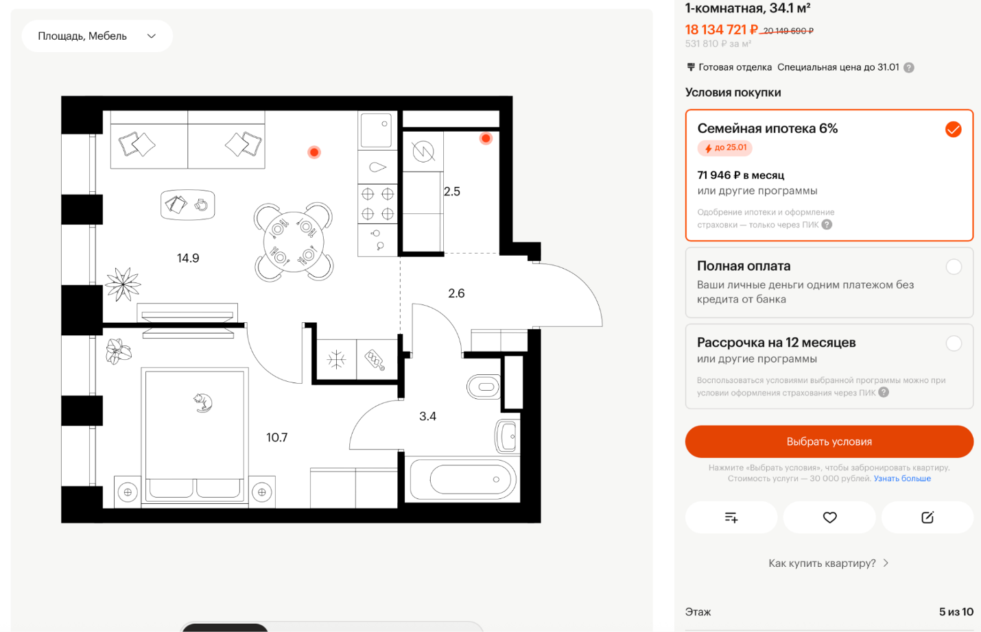 При выходе на сделку в рамках семейной ипотеки предпочтительнее рассматривать евро-двух- и евро-трёхкомнатные квартиры. Однако при ограниченном бюджете и отсутствии опыта ремонта студия с отделкой часто оказывается более рациональным вариантом. Ремонт однокомнатной квартиры сегодня может стоить около 4 млн ₽, что делает готовую отделку существенным преимуществом.